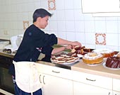 Topfenbrote, Salzstangerl, Kuchen und Kekse wurden angeboten. Apfelsaft, Kaffee, Mineralwasser und Punsch wurden den Eltern und Lehrern günstig verkauft. Fast alles wurde an den Mann und an die Frau gebracht. Insgesamt kamen 200 € herein.